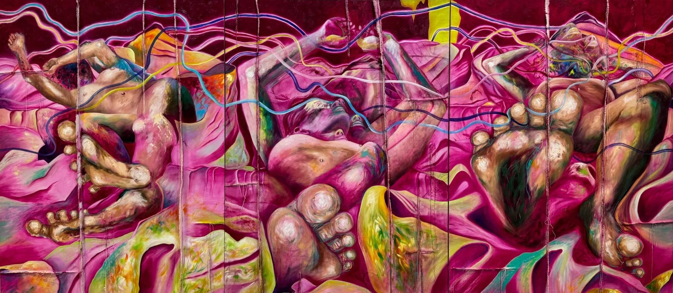 oil, graphite, pastel on sewn canvas